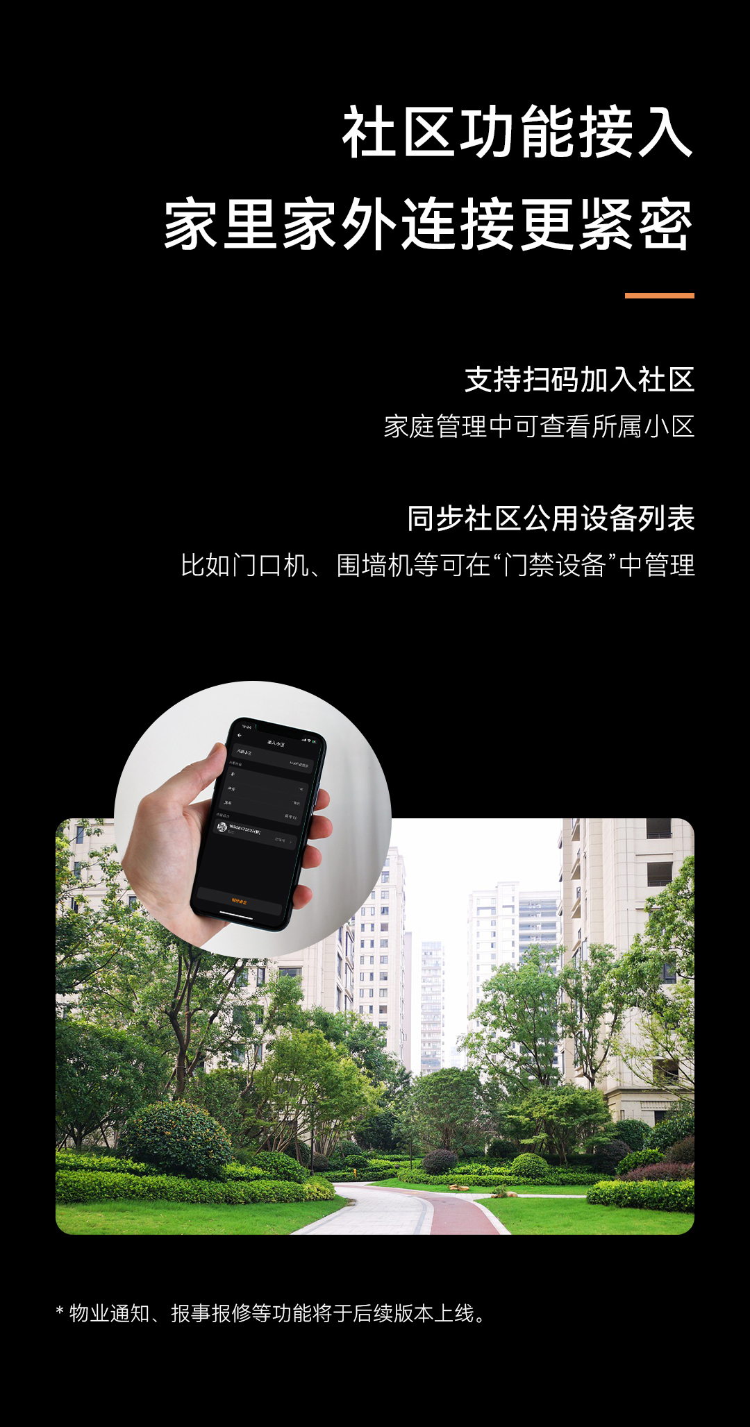 *物業(yè)通知、報事報修等功能將于后續(xù)版本上線。