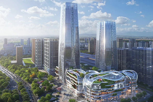 位于西安“中央商軸”之上的南飛鴻廣場DK-1-B ,總建筑面積45萬㎡,包括10萬㎡商業(yè)、5.8萬㎡超五星級索菲特酒店、7萬㎡超高層5A甲級寫字樓、8.2萬㎡城市級商住LOFT以及3000個停車位。