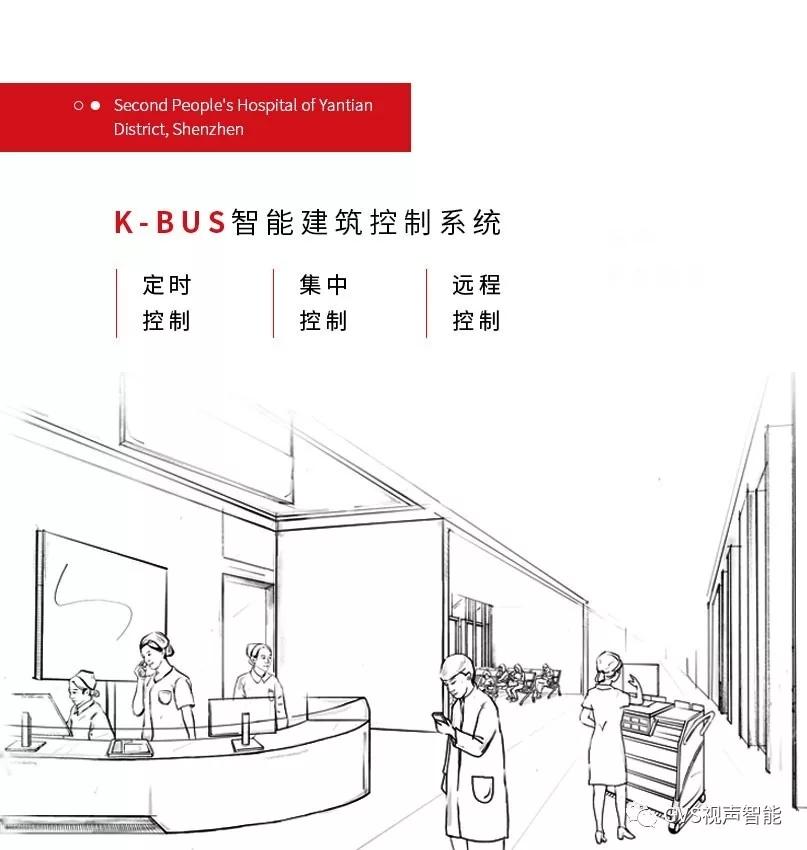 針對此情況,GVS視聲為深圳市鹽田區(qū)第二人民醫(yī)院提供K-BUS智能建筑控制系統(tǒng),該系統(tǒng)基于KNX國際標(biāo)準,具備高穩(wěn)定性、高兼容性和高開放性,操作容易,安全系數(shù)高,備受院方認可。