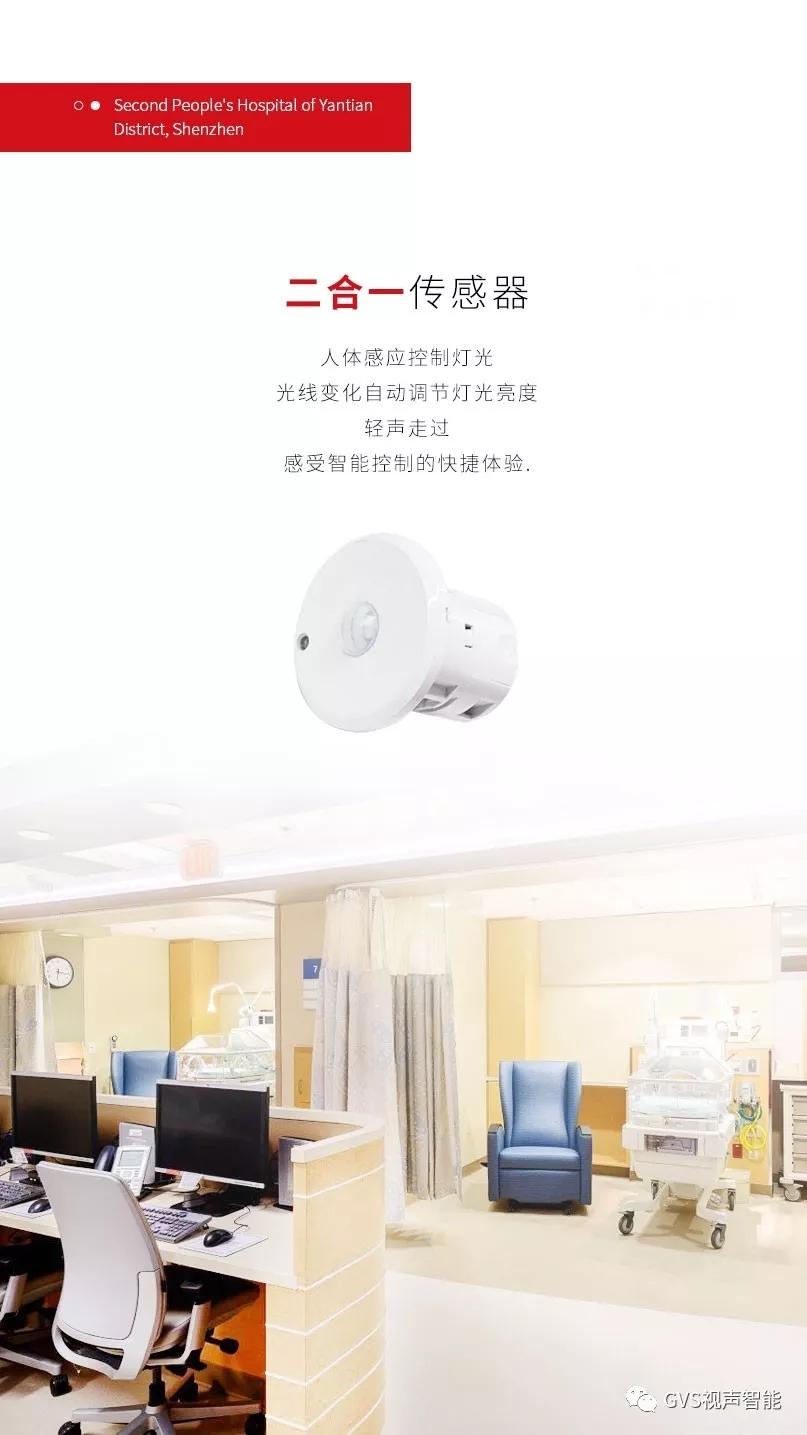 GVS視聲,一直堅持以人的需求為核心,因此,在為醫(yī)院進行解決方案定制的時候,也充分以人為本,將病人的感受考慮進去。比如,為防止病患間通過觸摸開關(guān)等形式交叉感染,給醫(yī)患雙方營造舒適的公共環(huán)境,GVS視聲給項目搭載二合一傳感器。
