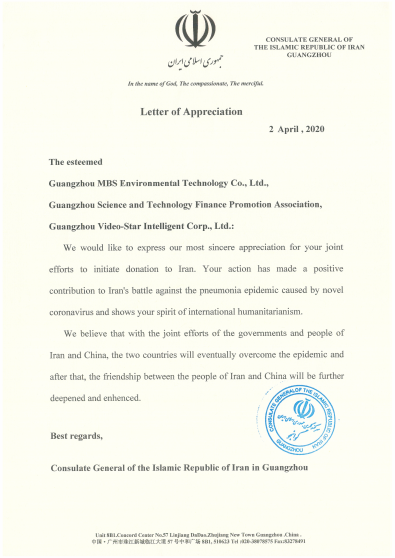 常言道:錦上添花易,雪中送炭難。對(duì)于GVS視聲、廣州市科技金融促進(jìn)會(huì)和廣州石頭造環(huán)??萍脊煞萦邢薰驹晾实臏嘏袆?dòng),伊朗駐華使館和伊朗駐廣州總領(lǐng)事館分別發(fā)來(lái)感謝信。